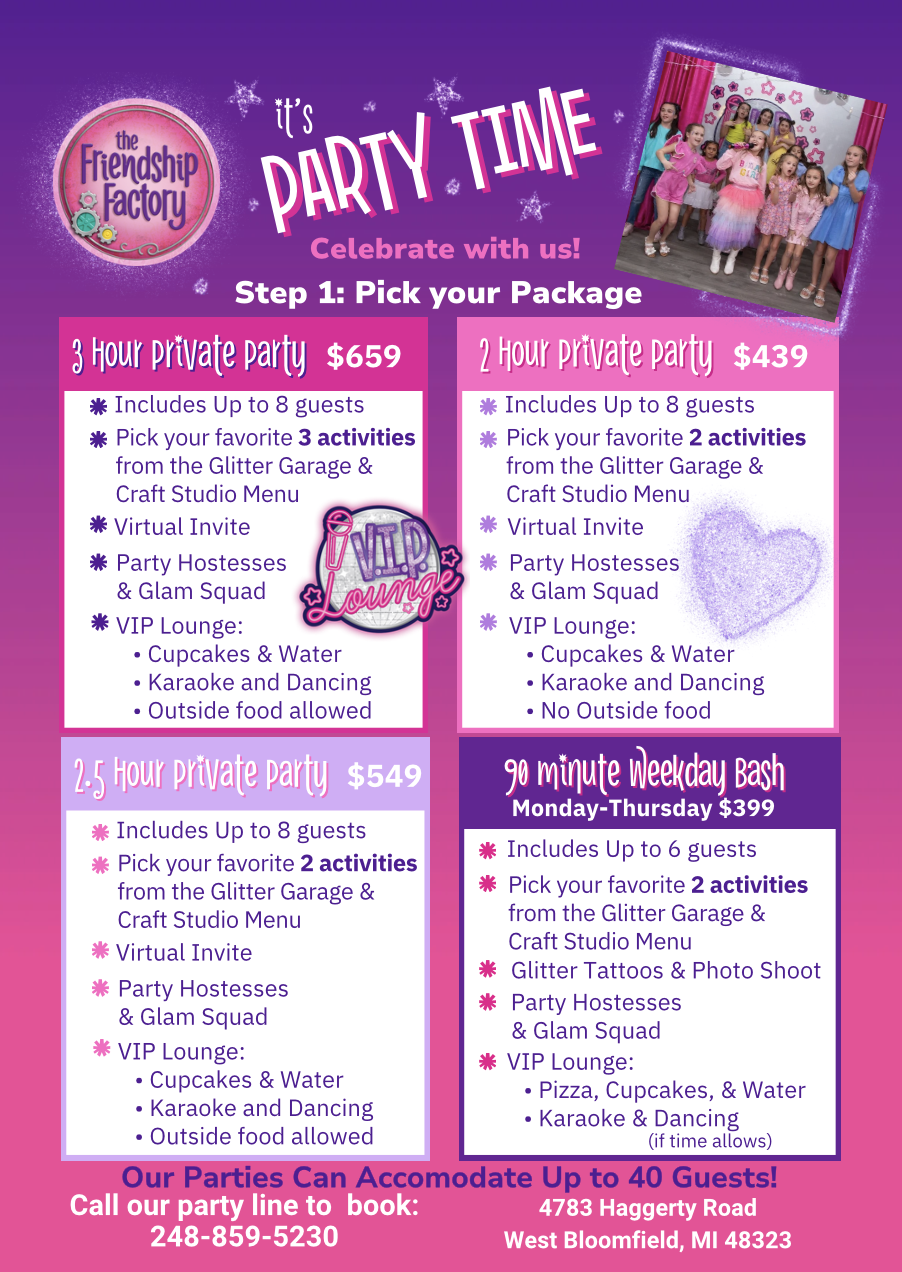 West Bloomfield @ 248-859-5230 or Email FFWB@thefriendshipfactory.com